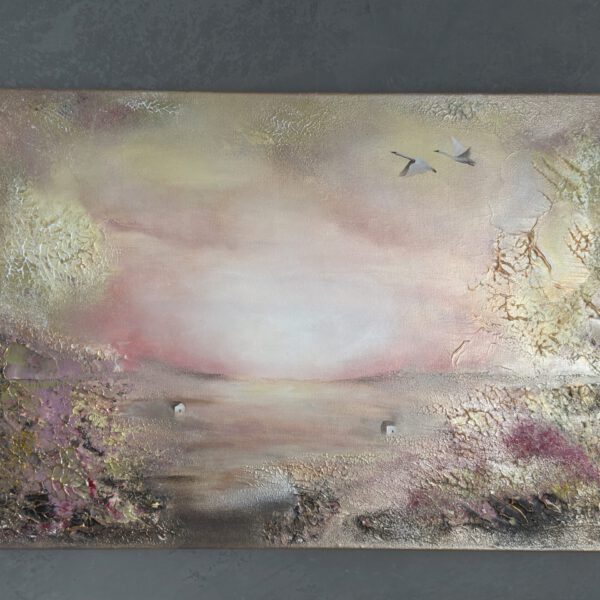 Tillverkad med de bästa akrylfärgerna (Winsor & Newton, Lefranc Bourgeois) har målningen en strukturerad yta. Den är signerad och kanterna är målade i matchande färger. Målningen levereras som “redo att hängas”, uppspänd på en deep edge-kilram.