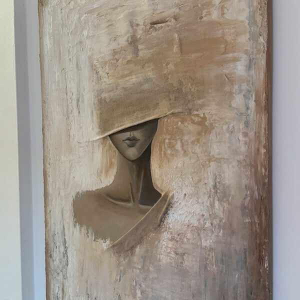 Tillverkad med de bästa akrylfärgerna (Winsor & Newton, Lefranc Bourgeois) och modelleringspasta har målningen en strukturerad yta. Den är signerad och kanterna är målade i guld.